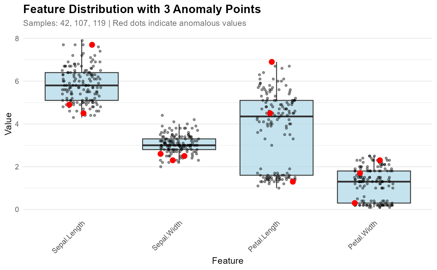 plot_anomaly_boxplot(contribution_obj = NULL, data = iris[1:4], sample_id = anomaly_ids)